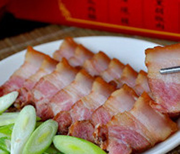 3、質(zhì)量好的臘肉,皮色金黃有光澤,瘦肉紅潤(rùn),肥肉淡黃,有臘制品的特殊香味。
