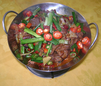 食材:狗肉500克、胡蘿卜300克、香菜100克、大蔥100克。