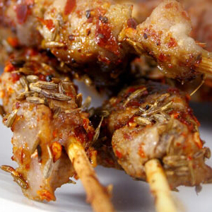 原料:羊肉500克、花椒約50粒、鹽1茶匙(5克)、料酒2湯匙(30ml)、白胡椒1/2茶匙(3克)、孜然1小把、辣椒面1小把、植物油3湯匙(45ml)、洋蔥1/4、 姜3片。