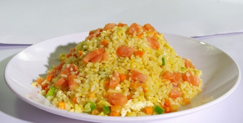 3、喜歡吃海鮮的,可以在炒飯最后加入一些蝦仁一起翻起,這樣營養(yǎng)價值更高哦。