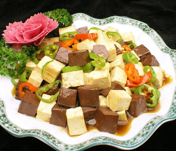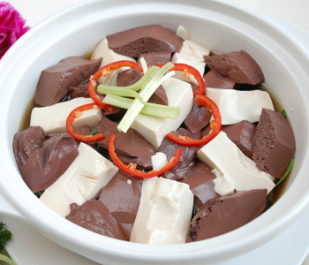 豬血是黑兮兮的血,不少人都覺得吃這樣的東西感覺很惡心,不敢吃。但是有些人就瘋狂愛上這樣的一道菜肴。女性常吃豬血,可有效地補充體內(nèi)消耗的鐵質(zhì),防止缺鐵性貧血的發(fā)生,從而使自己面如桃花,活潑輕盈,這是任何高級化妝品都無法相比的。豆腐營養(yǎng)豐富,含有鐵、鈣、磷、鎂等人體必需的多種微量元素,這些都是對身體非常有益。