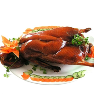 5、烤鴨外皮焦黃香脆,內(nèi)質(zhì)肉嫩滑潤;將鴨肉切成薄薄的片兒,每一片有皮有肉有油,荷葉餅上抹上一層甜面醬,加上大蔥段,把鴨肉片卷進去,吃起來肥而不膩,鮮美可口。然后,用“鴨架”燉湯,清爽利口。