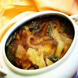 3、改用慢火煲2小時(shí)以上至食料熟爛,用鹽、雞粉、麻油調(diào)味即可。