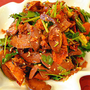 材料:豬心1個、花椒、香葉、食鹽、小蔥、醬油、辣椒油、雞精
