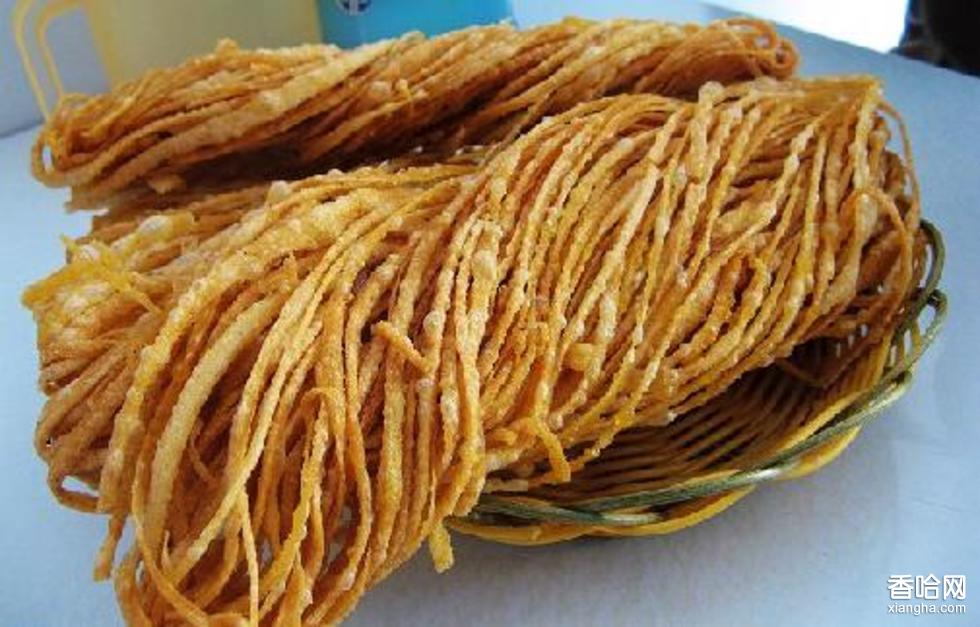 馓子是用白面為原料,稍加鹽和調(diào)料,和面時(shí)要用比較大的勁道,最好能再加一些雞蛋或者植物油,可以使馓子更香脆;把和好的面搟成面餅,再把面餅搓成細(xì)條(越細(xì)說(shuō)明手藝越好),一圈圈放入油中炸制而成,酥脆可口。