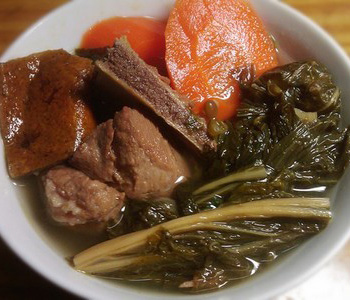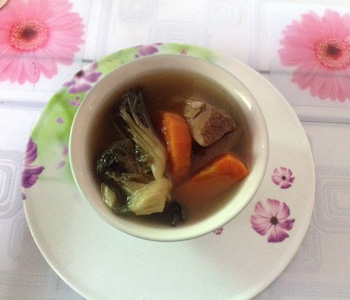 材料:白菜干 60克、豬骨 600克、蜜棗適量、薏米適量、姜適量、鹽適量。