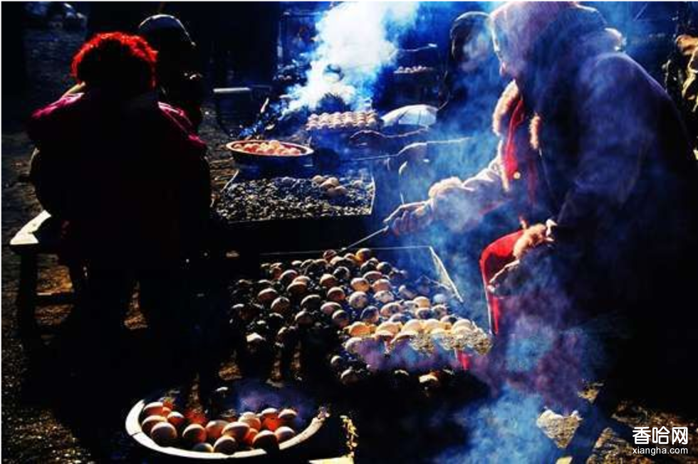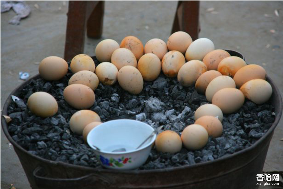 烤三蛋,是夜市巴扎上一道獨(dú)特的風(fēng)景。將雞蛋、鴨蛋、鵝蛋放在撒了灰的碳火上慢慢的烤,不停的翻動(dòng),掌握好火候,烤熟后味道非常獨(dú)特,吃時(shí)醮些早已調(diào)好的鹽水或撒些鹽,讓人回味無窮。