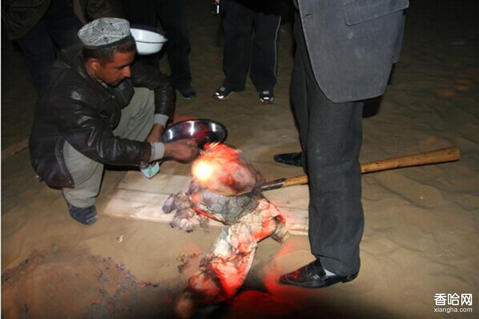 羊肚子烤肉是沙漠深處的牧民發(fā)明的一種高營養(yǎng)、高熱量的食品。具體做法是:先把羊宰了,然后把羊肚子拿出來洗干凈。再把切好的碎羊肉拌上調(diào)料(鹽和孜然)塞進(jìn)羊肚子里面,然后用羊腸子把羊肚子的口捆綁好,然后將羊肚子埋在火灰里烤,大約烤一個(gè)半小時(shí)的時(shí)間就可以食用了。