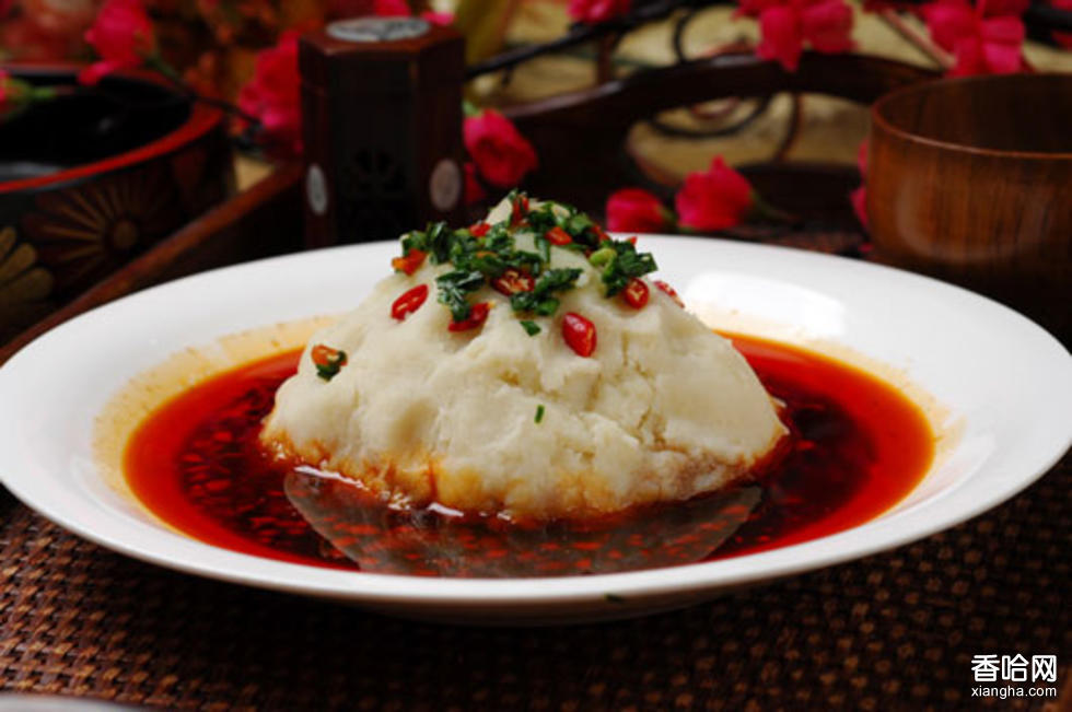 挑選北山生長(zhǎng)的面飽水少的中下個(gè)體洋芋蒸熟,去皮涼冷,少量的可倒在石窩(石臼)用木棒桘砸細(xì)砸柔,大量的可倒在結(jié)實(shí)木槽里用木榔頭砸細(xì)砸柔。食用時(shí)可澆上調(diào)料醋水或者酸菜漿水,調(diào)上蒜泥、辣椒、蔥末、韭菜等。很好吃,有消炎解暑治療便秘之功效。隴南武都魚龍鎮(zhèn)洋芋攪團(tuán)最有名。
