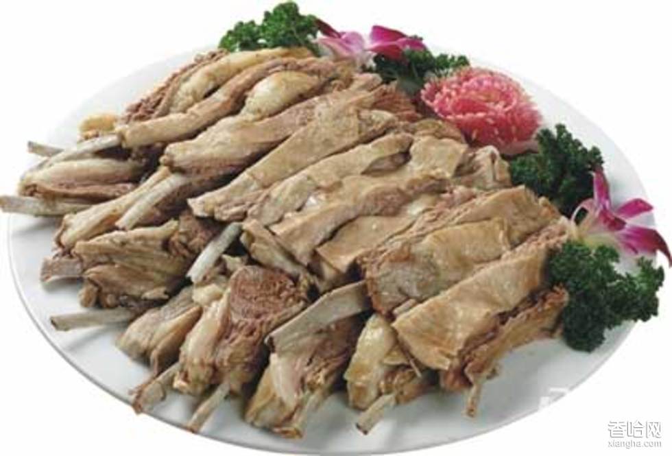 原料:羯羊羔一只 鹽花椒、生姜、草果。做法:烹調(diào)方法有二,一是把剛宰的羊(剝皮,去掉頭蹄、里物五臟,弄干凈)整羊置入大鍋內(nèi),旺火燒沸,及時(shí)撇去肉沫,改用水火煮燉,放入鹽、花椒、生姜、草果適量,再慢燉,等血水干未干時(shí),用筷子插試,能輕松插進(jìn)去時(shí)立即撈出,瀝凈浮水,備用。二是將整只羊卸成前胛、后胛、胸衩、背子、肋巴、尾巴骨等六大件,置入大鍋內(nèi)煮燉,方法同上。