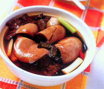 材料:豬腰子、粳米、蔥、五香粉