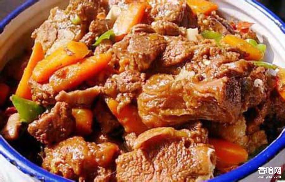 剝了皮的羊羔清除內(nèi)臟后將肉洗凈,切成1至2寸見方的塊;鍋內(nèi)燒熱青油,至油冒煙時(shí),倒入肉塊爆炒;待肉皮炸為黃色,加面醬、辣椒、姜粉、花椒粉、鹽、趁油熱時(shí)反復(fù)翻炒,等到肉塊呈現(xiàn)紅色,調(diào)料已滲入肉中,加少量涼水,封嚴(yán)鍋口,用文火慢煨;水快干時(shí),肉也完全燜熟,即可出鍋上盤
