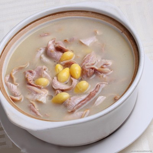 食材:鯽魚、黃豆、白果、銀耳、姜片、鹽。