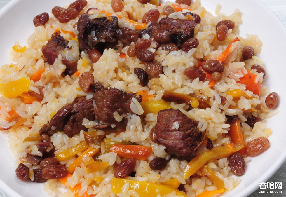抓飯是新疆各族人民普遍喜愛的食物,維吾爾語稱其為“波羅”。做法是先用油炒洋蔥、胡蘿卜條、羊肉塊,然后放入淘凈的大米加水燜蒸。抓飯營養(yǎng)豐富,具有食補的功效,是維吾爾民族過節(jié)、待客的必備食品之一。因為最初是用手抓食的,故得此名。不過現(xiàn)在大家吃抓飯都改用筷子或勺子,不再直接下手抓啦。