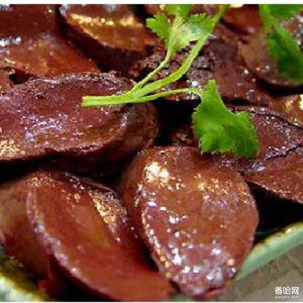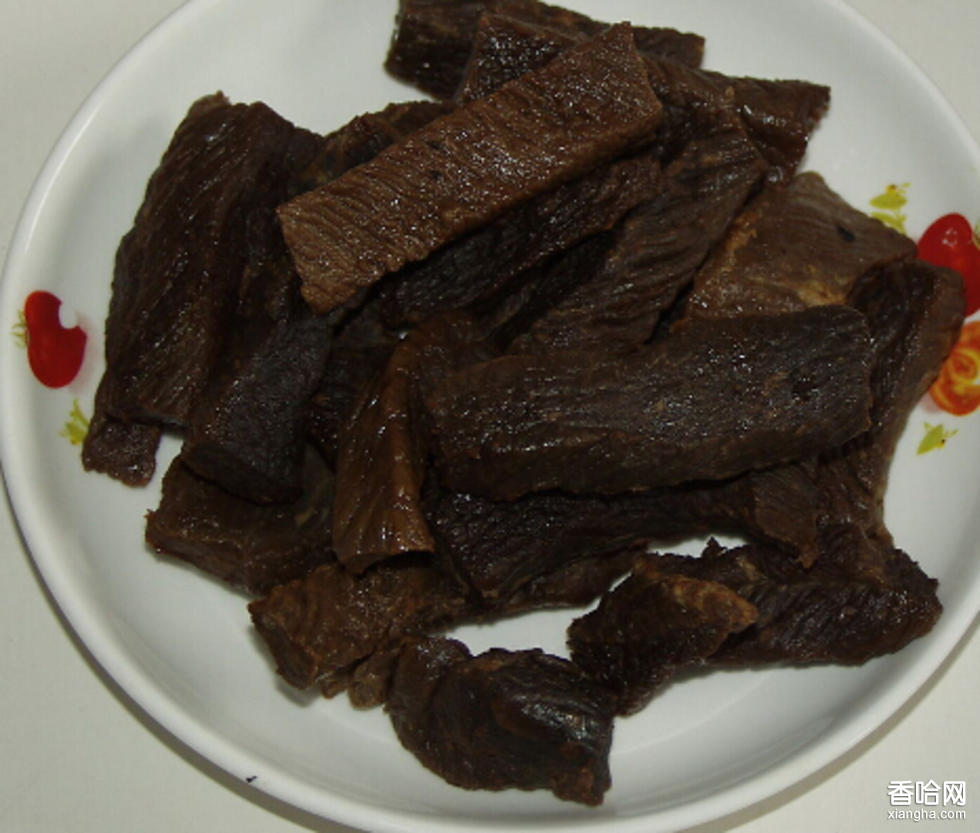 將豬肝吹氣膨脹后放入精鹽,五香粉,姜絲,紹酒腌漬12小時取出,撒上花椒粉風(fēng)干。食用時將寺不放入湯鍋中,加辣椒,姜,花椒用文火煮2個小時取出切片。色澤紅潤,芳香麻辣,可貯存一年不變味。