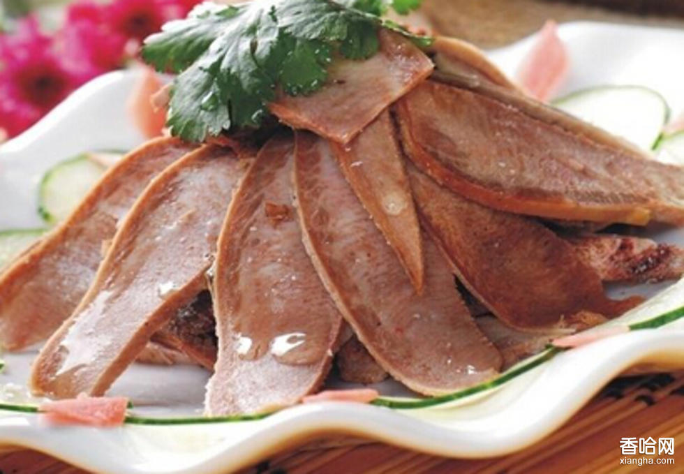 蒸牛舌以牛舌肉為主料,經(jīng)煮蒸而成。特點(diǎn)是入口軟嫩,味道鮮美而帶椒香。牛舌外有一層老皮。去掉老皮,可以醬、燒、鹵。某些市場賣的舌頭立即可食,但生的、煙熏的或粗鹽腌的舌頭常買到,煮后不論熱用冷食、加不加調(diào)味料都不錯。鹽腌舌頭通常是擠過汁的煮熟切片,一般采冷食,生舌頭可加葡萄酒溫煮,或水煮后添各類配飾上桌。牛舌和小牛舌最為常見。