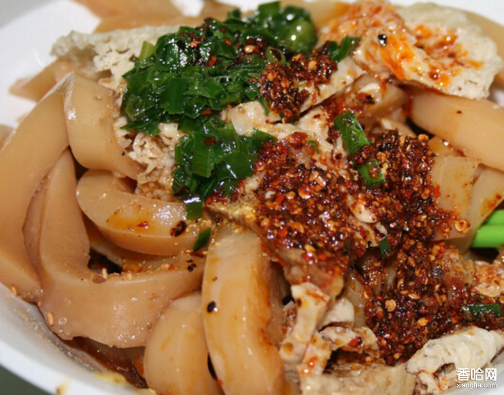 靜寧有許多風(fēng)味小吃,釀皮就是其中的一種,家喻戶曉,人人愛吃,尤以女性為最。釀皮也叫涼皮,在靜寧縣城一年四季都有賣的,夏天吃得人更多,冬天更別具風(fēng)味。涼皮以其綿軟潤滑、酸辣味美、爽口開胃等優(yōu)點招人愛,不但是街頭小吃,近幾年還登上大雅之堂。靜寧的賓館、飯店、酒樓餐宴中,這道小吃必不可少。