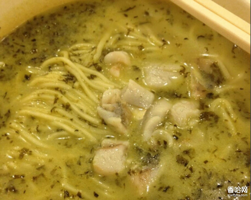 黃面魚魚又叫“粉糊子”,是以秋季收獲的玉米磨成細面為原料,先將少許的黃面下入盛著涼水的盆子里用筷子攪拌成面湯,然后倒入開水鍋內(nèi),用大火煮沸,接著加入黃面,大約過十分鐘,再往鍋內(nèi)加入量的熱水?dāng)嚢杈鶆颍陀蒙鬃影压饣拿鎴F舀進制作的篩狀餐具里,通過許多小孔眼漏進涼水盆里,冷卻后撈出裝碗,放上各種調(diào)料。