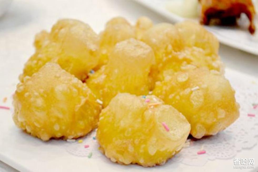 4、經(jīng)炸后,糕面出現(xiàn)薄如蟬翼、白如霜雪的一層泡,猶如繁花盛開,似乎見風(fēng)即消,入口即化,松軟綿潤,芬芳醇香。