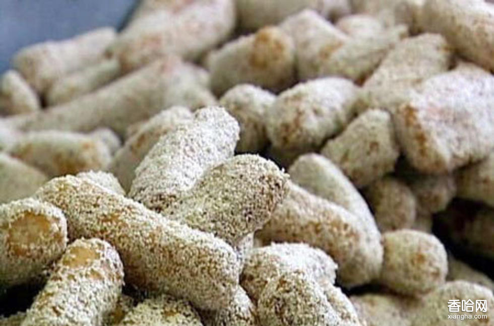 其加工工序,經(jīng)選料、淘洗、浸泡、磨粉、蒸料,和面、搟片、搓條、制坯、陰干、貯存、發(fā)坯、油浸、炸制、澆漿、掛皮等24道工序制成。一般冬季制坯,四季加工成品。從投料到出成品需要半年時間。成品呈圓柱體,個大體松,皮色金黃,肉質(zhì)潔白,呈絲網(wǎng)狀,香甜酥脆,綿軟易化。