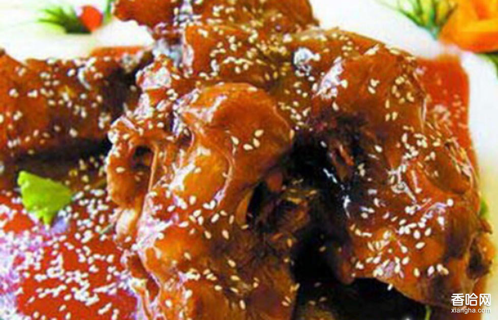 絲路駝?wù)朴置┥今務(wù)?,是一道色香味俱全的漢族名肴,屬于甘肅菜。在古代的絲綢之路上,駱駝是最主要的交通工具,它能在戈壁沙漠中長途跋涉,主要憑借那四只堅實(shí)的駝?wù)?。由于駝?wù)迫渴墙?,其營養(yǎng)價值很高。但駱駝壽命長,一般很少宰殺,所以駝?wù)坪茈y尋覓,它與熊掌一樣名貴。