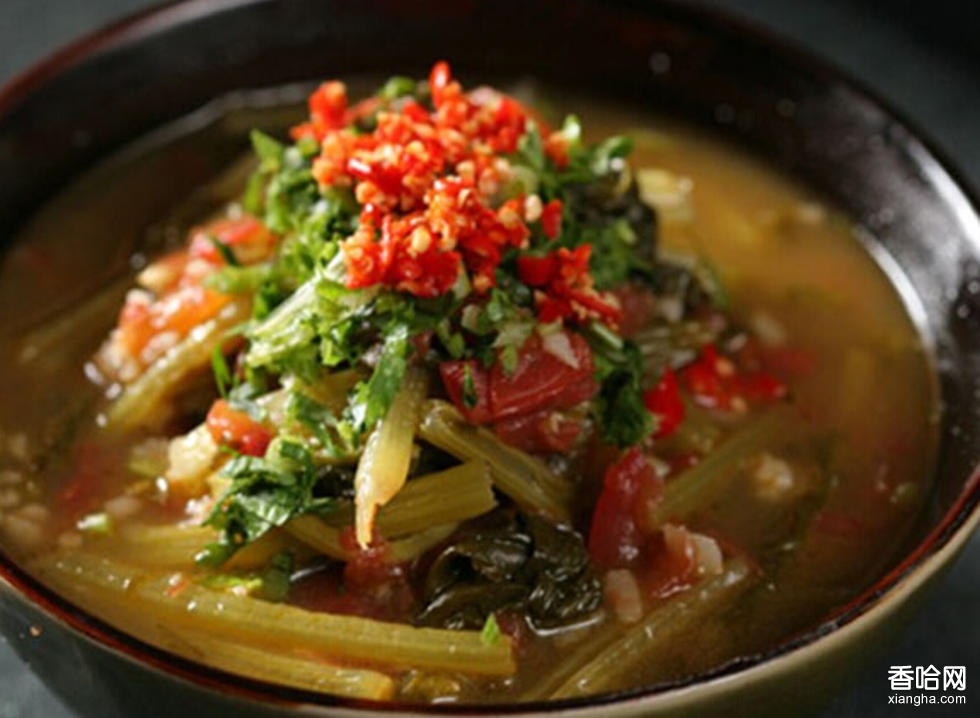 酸扒菜是云南鎮(zhèn)康地地道道的風味菜,從縣城到農(nóng)村,鎮(zhèn)康人都有做酸扒菜的歷史,酸扒菜是鎮(zhèn)康人的拿手菜,是鎮(zhèn)康人的招牌菜之一。酸扒菜還有藥作功效,特別對感冒有一定療效。做一道酸扒菜并不難,但吃起要香味俱全就很不容易。不同的人用同樣的材料和同一個人用不同的材料,做出的酸扒菜味道也有差別。衡量酸扒菜做得如何,關(guān)鍵是吃起來要:酸到位、辣到位、香到位??偟母杏X是酸香酸香的。