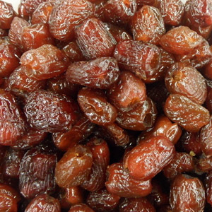 真正的好的蜜棗,看起來都很飽滿,果實表面的皺紋較淺,拿一顆放在手掌上,沉甸甸的很有分量。用手輕輕捏一下,會感到果肉很厚實,不會一下捏到核。不好的就相反了。