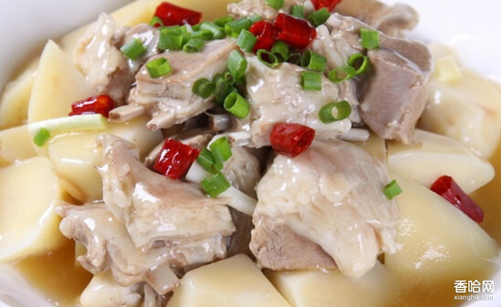 燉羊肉是當(dāng)?shù)氐奶厣页醪酥唬瑹跹蛉馐且苑恃蛉鉃橹???山堤墙抵?,美容養(yǎng)顏,增強(qiáng)抵抗力。做法多樣,營養(yǎng)價值豐富。