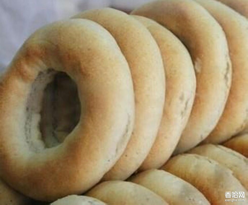 制作方法:將面粉發(fā)酵,添加堿水去酸,和以胡麻油,配上雞蛋,椒末,姜末,桂皮,精鹽等佐料,經(jīng)過精揉細搓后,掐成劑子,并拉條,再揉成大小粗細均勻的環(huán)狀,形如微縮的救生圈,故又名“曲連”。然后將姜黃、麻油等配置好的糊狀物抹在面圈上,置于上下都有炭火的鏊中雙面烘烤而成,具有耐存耐放之長處,即使在炎夏,存放月余也是光干不餿。酥圈圈烤成出鍋時,香氣撲鼻,誘人垂涎。