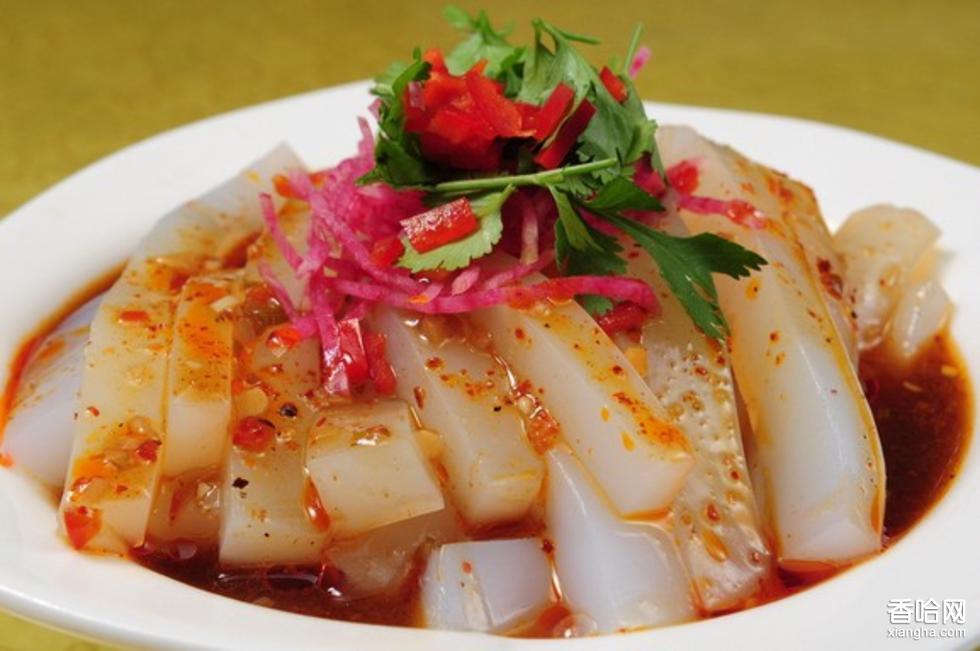 天水涼粉品種繁多,風味各異,制作考究,佐料獨特。用蕎麥制成的涼粉柔軟滑爽,用豌豆制作的涼粉晶瑩透亮,還有用扁豆、粉面等制作的涼粉