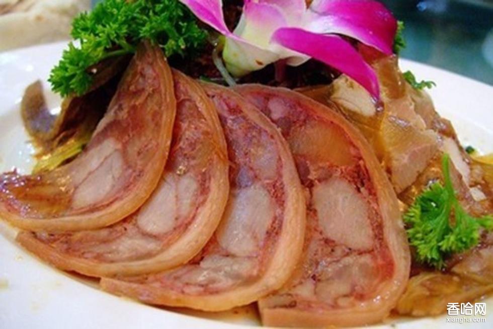 制作方法:1、將豬腿洗凈,從小蹄角上面用刀子劃開(kāi)皮肉,將骨剔出(瘦肉不用取出),把瘦肉劃切成條狀,寬約3-5厘米,厚為2-4厘米,越長(zhǎng)越好。2、配料調(diào)好,與食鹽一起在瘦肉上揉搓,把球米放碗內(nèi),加白酒,點(diǎn)燃白酒,邊燒邊攪,約燒15分鐘即可。3、用牛角刀或匕首取出小蹄與腿之間的骨頭,不要?jiǎng)澠破?,把瘦肉放在里面,涂抹好調(diào)料,用線(xiàn)縫好刀口。從小蹄以上用筷子般粗細(xì)的繩子一道挨一道扎緊(越緊越好)。4、將捆好的卷蹄放盆內(nèi)腌2晝夜,再放沸水鍋內(nèi)煮至熟透(不要煮得太爛),撈出晾涼,解掉捆繩,拆去縫線(xiàn),空處用蘿卜絲和炒大米粉(大米炒熟磨碎)填塞,放時(shí)壇內(nèi),密封壇口,15-20日后即可食用。