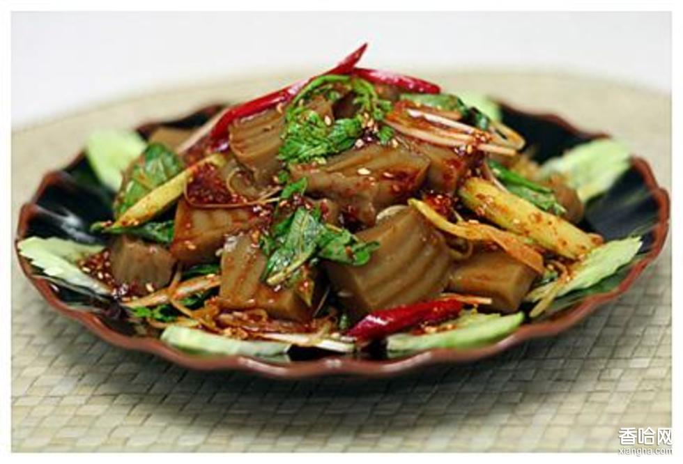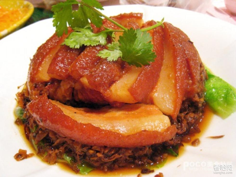 吃法別致。商州城里人大年三十闔家團(tuán)聚共進(jìn)團(tuán)圓席時(shí).必以此莢盛—大盤,放置八菜之中,尊之為“頭萊”。吃要趁熱,還必須在肉上澆以辣子、蒜水。因?yàn)檫^烘(爛),筷子夾不起來,所以食時(shí)必須用湯匙,一塊一塊地舀著吃,吃時(shí)勿須咬嚼。入口即化,油爽香滑。嘗過之人,莫不停匙叫絕。其肉色澤紅亮,頗似紅玉,由不得人食欲頓生。
