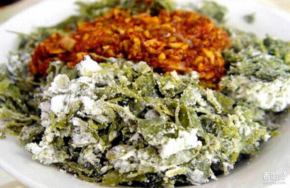 麥飯是陜西特色的一種小吃,是用各種菜蔬和以干面粉,蒸而食之。大抵以野菜為最好。最有名的是用洋槐花和苜蓿做的。在沒有槐花和野菜的季節(jié),最常用芹菜葉做。麥飯,亦菜亦飯,蔬菜、花朵皆可入食。五月槐花盛開,可做槐花麥飯;榆錢豐盛的時(shí)候,做一盤榆錢麥飯也是非常的香甜滴。到了夏季,茄子,土豆,香芹……好多蔬菜都可以用來做這個(gè)簡單而又噴噴香的鄉(xiāng)土小吃。