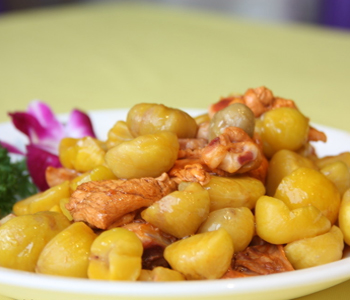 熟食板栗能和胃健脾,緩解脾虛;如果是將板栗仁蒸熟、磨粉,制成糕餅,適用于飲食少、身體瘦弱的兒童,以增加食欲,調(diào)理腸胃。用板栗和粳米熬粥,既有利于脾胃虛寒所致的慢性腹瀉患者早日康復(fù),也是老年人消化不良、氣虛乏力的食療驗(yàn)方。老人腎虛者、中老年人腰酸腰痛,腿腳無(wú)力,小便頻多者尤宜;也適宜氣管炎咳喘、內(nèi)寒泄瀉者食用。
