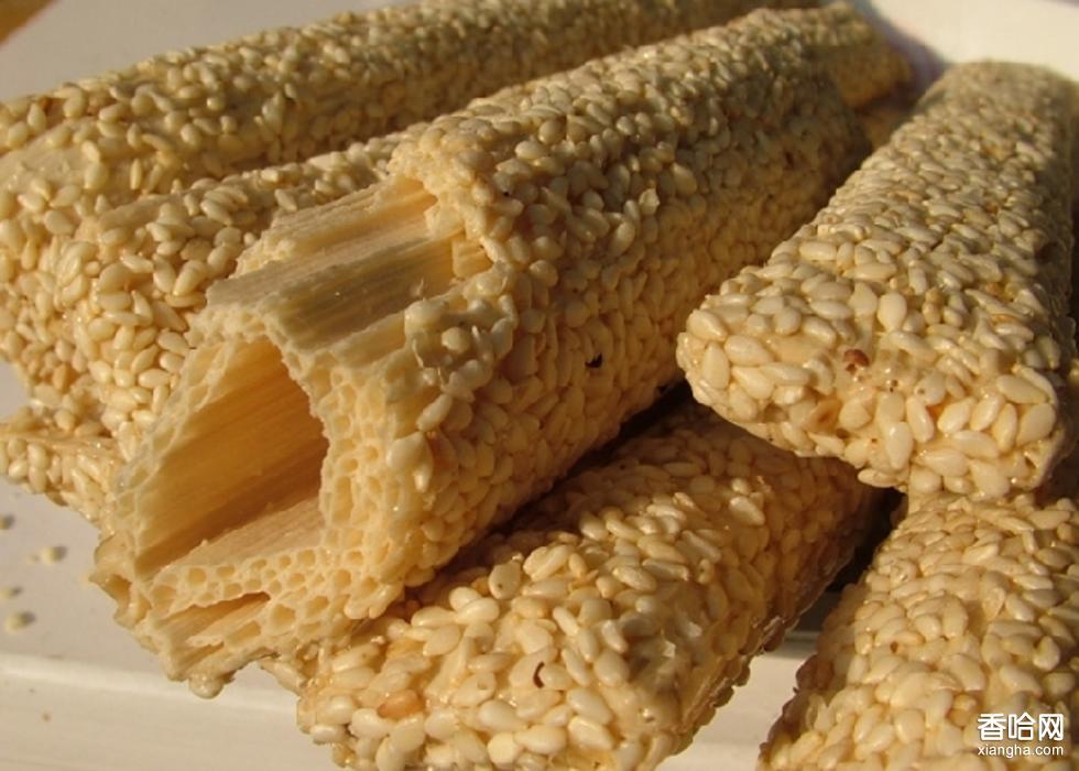 制作方法:流程:白砂糖→溶化→熬糖→冷卻→拉白→拌麻→冷卻成型→切片→整形→冷卻→稱量→包裝→成品1.將芝麻淘洗干凈,在炒鍋中炒干水分,炒熟,搓皮,成熟芝麻仁。2.將糯米淘洗干凈,在炒鍋中炒至爆花成糯米花。3.熬糖:白砂糖、適量水、飴糖熬制,溫度到140—150℃時倒在臺上冷卻。4.拌麻:芝麻置于鍋中炒制,將拉白的糖坯放入,加入桂花、香精,攪拌均勻。5.將熟芝麻仁、糯米花倒入糖漿中,拌勻,倒入銅(或不銹鋼)板上,揉搓拍成寬10厘米、厚5厘米的長條,用薄刀切成梳子薄片即成。6.冷卻、成型:冷卻適中,自然成型。7.切片整形:切片后冷卻,及時整形,以便包裝。