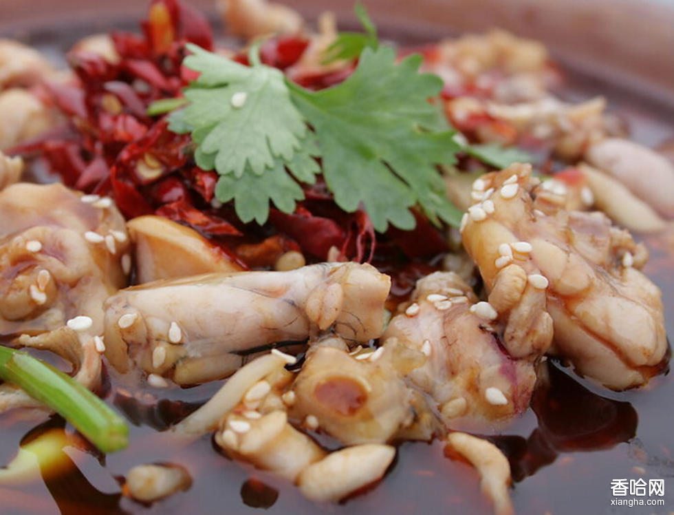 做法:1.將田雞切成小塊后用少許醬油和水以及淀粉漿一下;2.將芹菜洗凈切成段,青蒜拍松斜切成小段,萵筍葉洗凈切成段;3.蔥、姜、蒜切絲,豆瓣辣醬用刀剁碎;4.坐鍋,放少量油,待油燒熱后放入豆瓣辣醬,炒出紅油后放入蔥、姜、蒜翻炒幾下,放入少量水,開鍋放入少許鹽、味精,然后放入青菜,斷生后撈出裝入碗內,將漿好的田雞滑入鍋內,待變色熟透后連湯一起裝入碗內;5.將鍋洗凈燒熱,將花椒粒、干紅辣椒倒入鍋內翻炒焙脆后,倒在案板上碾碎,撒在煮好的田雞上;6.坐鍋,倒入少量油,燒熱后淋在肉片上即可。