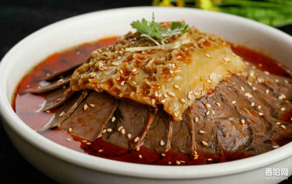 制作方法:1、將牛肉、牛雜洗凈。牛肉切成重約500克的大塊,與牛雜一起放鍋內,加入清水(以淹過牛肉為度),用旺火燒沸,并不斷撇去浮沫,見肉呈白紅色,倒去湯水,牛肉、牛雜仍放鍋內,倒入老鹵水,放入香料包(將花椒、肉桂、八角用布 包扎好)、白酒和精鹽,再加清水400克左右,旺火燒沸約30分鐘后,改用小火繼續(xù)燒1.5小時,煮至牛肉、牛雜酥而不爛,撈出晾涼。2、鹵汁用旺火燒 沸,約10分鐘后,取碗一只,舀入鹵水250克,加入味精、辣椒油、醬油、花椒面調成味汁。3、將晾涼的牛肉、牛雜分別切成4厘米長、2厘米寬、0.2厘米厚的片,混合在一起,淋入鹵汁 拌勻,分盛若干盤,撒上油酥花生末和芝麻面即成。
