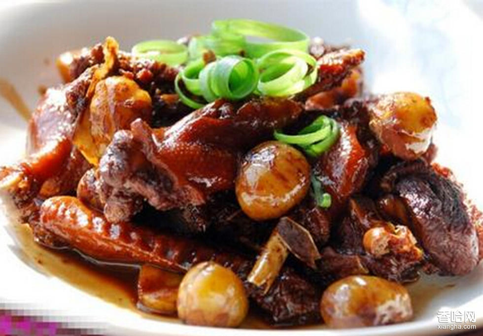 做法:1.鴨肉洗凈,斬成方塊;板栗剝殼后,在開水中稍燙幾分鐘,這樣容易很便可以剝?nèi)?nèi)層膜衣。2.油鍋燒熱,先倒入鴨塊,不停翻炒五分鐘左右,至表面略焦。3.在鍋中加入大碗清水,水量以浸過鴨塊表面為宜,燒滾后,改為中小火,加蓋燜煮約四十分鐘。4.當鍋內(nèi)的湯汁約剩下一半的時候,加入板栗,以及適量粗鹽,攪拌均勻后,繼續(xù)中火燜煮。5.待鍋中板栗鴨塊湯汁收干時,加適量生抽上色,即可出鍋。