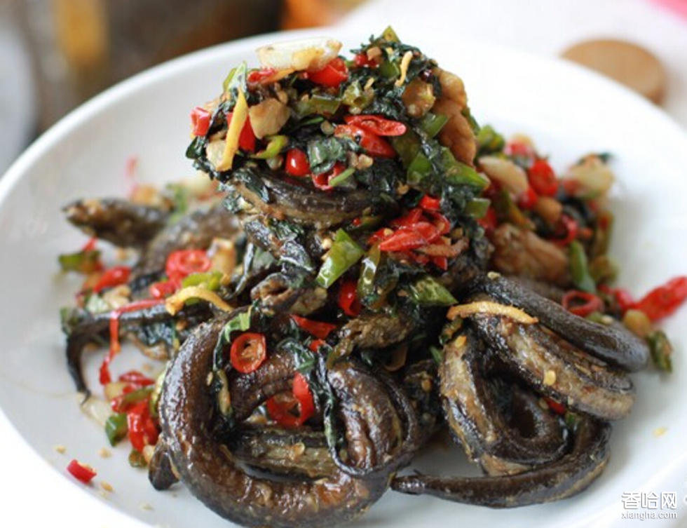 太極黃鱔,又稱太極鱔魚,是云南蒙古族的特色美食。這道菜已經(jīng)有幾百年的歷史,是用一個最具中國特色的符號來命名的一種食物。從菜名來看,太極是虛,鱔魚是實(shí),虛實(shí)相生似乎就是這道菜的特點(diǎn),是蒙古族招待客人的上等佳肴。太極鱔魚的吃法很有講究,你要先挽起袖子,備好幾包餐巾紙(擦手用)。夾起鱔魚后,先不要下口,用雙手從鱔魚的頭部撕開,將其內(nèi)臟取出來扔掉,其余的就可以食用了。太極鱔魚一律比以前吃得鱔魚小,因?yàn)椋B(yǎng)殖的大鱔魚經(jīng)不住如此“折騰”,還沒炒好就散架了,另外,只有活鱔魚下鍋,才能主動盤縮,所以對飲食生態(tài)特別講究的人,完全可以敞開吃,既不會有死了才下鍋的,更不會是人工催肥的。