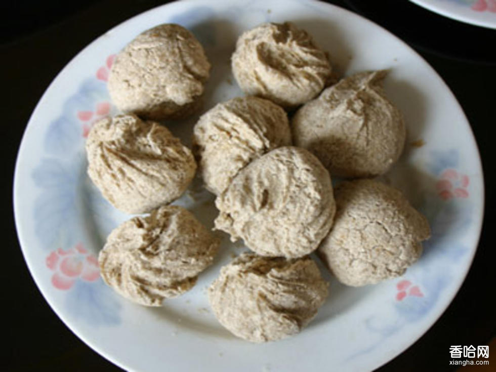用玉米面、麥面或蕎面,加水合成面團(tuán),做成餅狀,埋進(jìn)柴火灰中,翻動幾次,燒熟后就是燒饃饃。有些燒饃,用特制的花紋模子印出凹凸花紋,用火掀烙制成型后,現(xiàn)燒熟,簡直就是工藝食品。
