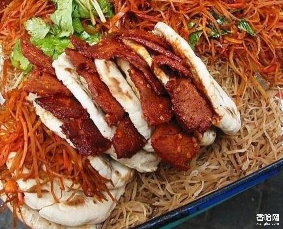 鹵肉鍋魁是四川傳統(tǒng)特色小吃,鍋魁因在歷史奪當地爐食之魁而得名,鹵肉鍋魁形狀若塊,約三寸長,寸許寬,卷邊滾圓,再把鍋魁開一個小口,加做好了的鹵肉,這樣就是鹵肉鍋魁,當然還要加各種調料。不包餡的稱空心鍋魁,包餡的另有名稱。鍋魁餅面橙黃色,具有香、甜、酥、脆的特點,加之包餡的不同,又各具風味,使人久食不厭。