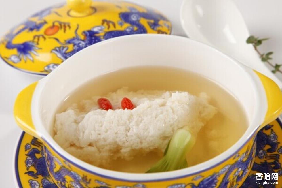 2.制好清湯?!皽珵椴酥?,細(xì)嫩的魚肉配以鮮醇的特制清湯,使二者相得益彰,更能體現(xiàn)該菜清鮮味美的特色。
