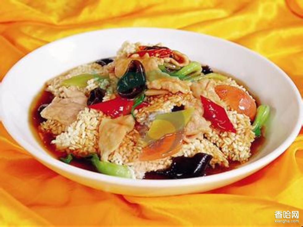 鍋巴肉片,是四川風(fēng)味名菜。以鍋巴作菜肴,早在清代已有。乾隆皇帝下江南,在江蘇品嘗此菜以后,曾御賜"天下第一菜"和"平地一聲雷"的美名?!冻啥纪ㄓ[》也記載當(dāng)時(shí)著名的"醉霞軒"、"味珍園"等餐館供應(yīng)"鍋巴海參"等菜肴。抗戰(zhàn)時(shí),重慶等地的餐館又盛行"鍋巴肉片"數(shù)十年來,此菜一直深受顧客歡迎。