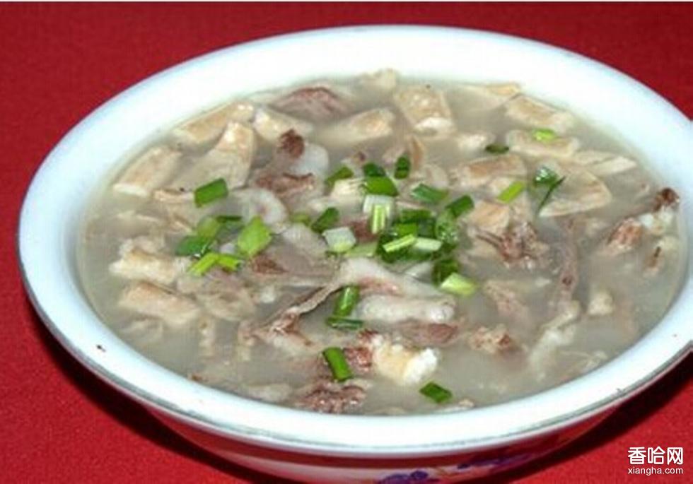 煮熟后撈起來瀝干,然后切成薄片放入滾開水里一汆,再倒入湯碗中,沖入滾燙雪白的羊湯水,撒上碧綠的蔥花,一碗熱氣騰騰,香氣四溢的羊肉湯就做成了。配上一個(gè)由海椒面、花椒面、鹽巴、味精等調(diào)和成的干碟子,可以大快朵頤了,吃得滿頭大汗,渾身上下熱乎乎的。