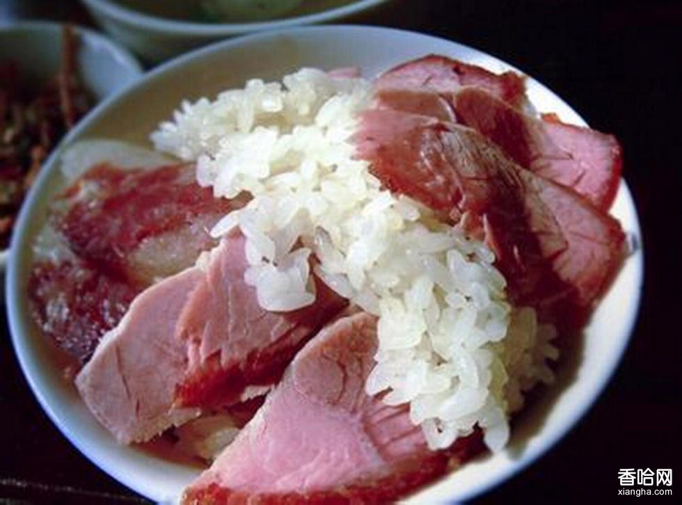 制作方法:1,糯米淘洗干凈用清水泡5個(gè)小時(shí),濾去水分入屜大火蒸3個(gè)小時(shí),中間要經(jīng)常把糯米用筷子扒散,使其蒸得軟硬均勻,出屜下在炒鍋加豬油翻炒均勻,鍋中留油改文火保持一定的溫度備用。2,瘦肉切成長(zhǎng)條約250克一塊大小,用八角、回香、花椒、桂皮、鹽、醬油、腌漬四至五天,拿出去掉香料,鍋下菜油燒至6成熱下肉塊炸至半干。濾油晾冷后切成薄片備用。3,酸蘿卜切成小丁、綠豆芽用開(kāi)水燙熟撈出濾干水、海帶切成細(xì)絲、蔥切成蔥花4,食用時(shí)將糯米飯盛在碗內(nèi),放上肉片、酸蘿卜、綠豆芽、海帶、蔥、油辣椒、醬油、味精拌均勻即可。
