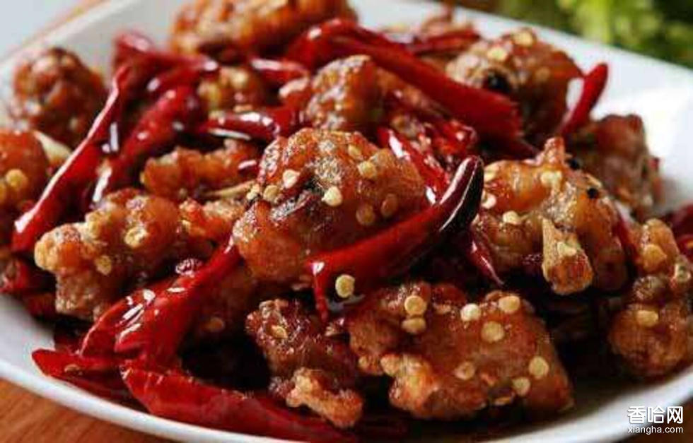 做法:1、把雞洗凈,剁成小塊;把干辣椒剪成段;蔥切成段,姜拍成塊、蒜切片。2、把雞塊用紹酒、糖、鹽、蔥段和姜塊腌上,至少半個小時。3、炒鍋置旺火上,倒入半鍋油,燒至五六成熱時,下雞塊炸;要把雞塊表面的水分炸干,待雞塊收縮顏色炸成金黃色時撈出,控干待用,并撿去蔥段、姜塊。4、炒鍋里留4湯匙油(50克左右),燒至五成熱,放入干辣椒段、花椒粒、蔥、姜、蒜炒香,馬上投入雞塊炒勻,烹入醬油,滴入香油,最后下味精翻炒均勻,出鍋即可。