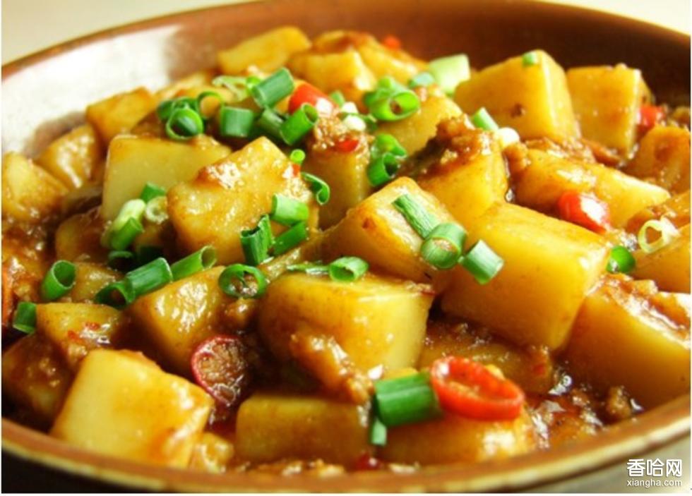 米豆腐是川、湘、黔、鄂地區(qū)著名的少數(shù)民族小吃。此菜潤滑鮮嫩、酸辣可口。它是用大米淘洗浸泡后加水磨成米漿,然后加堿熬制,冷卻,形成塊狀“豆腐”即成。食用時切成小片放入涼水中再撈出,盛入容器后,將切好的大頭菜、鹽菜、酥黃豆、酥花生、蔥花等適合個人味口的不同佐料末與湯汁放于米豆腐上即可。