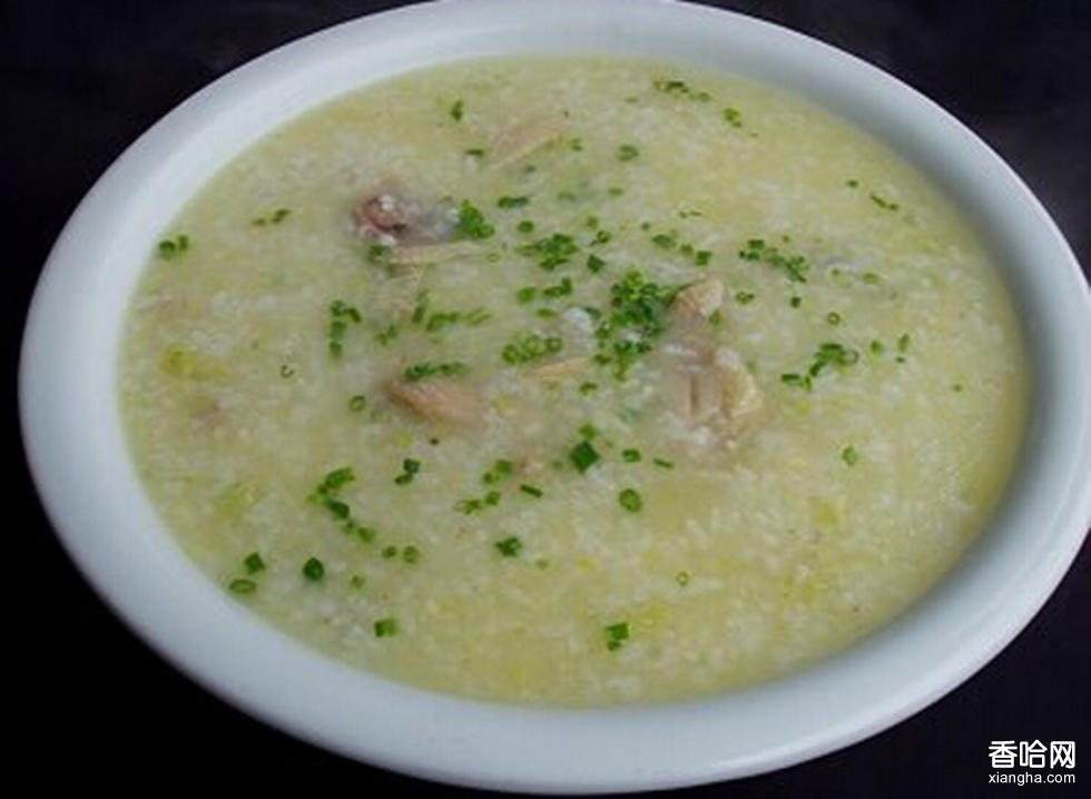 制作過程:將母雞砍成大塊,凈鍋加水,放入雞塊、姜塊,用大火燒沸,撇去浮沫,改用小火燉,雞塊撈起另用;在原湯中放進淘洗干凈的糯米、大米,用小火熬煮,邊煮邊用勺不停地攪拌,待米湯汁稠糊時加鹽拌勻即成。