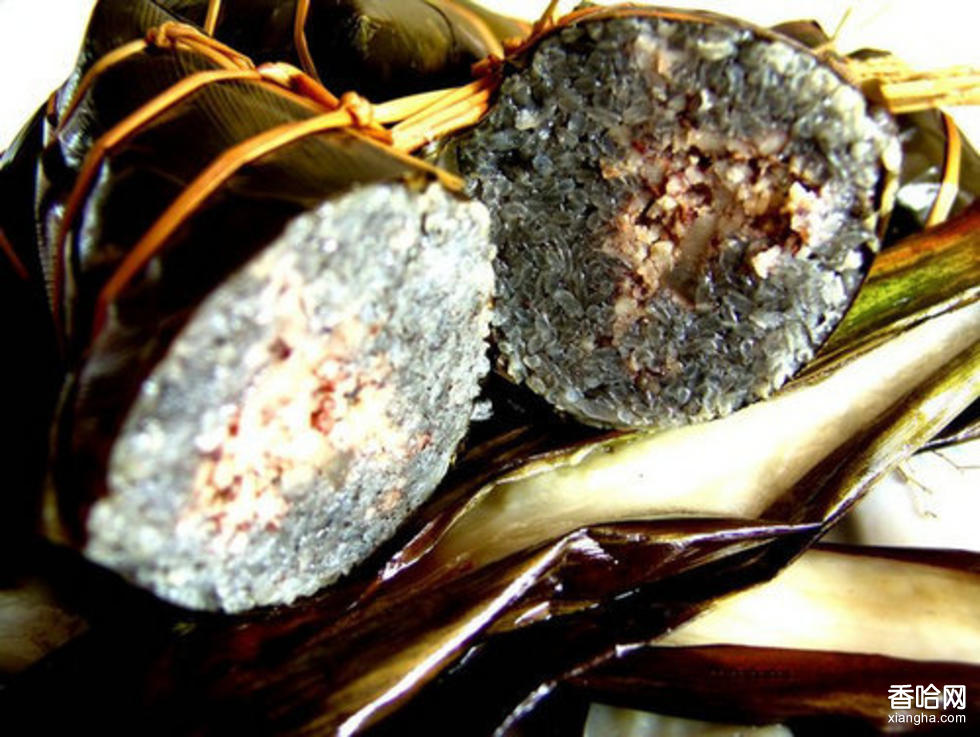 布依族的灰粽粑色美味香,極富民族風格,是布依族在節(jié)日時饋贈友朋的食品。粽子心選用上等糯米泡制,然后將糯米秧子或糯米草洗凈曬干燒成灰,兩者攪拌均勻,取出,篩去粗枝殘灰,佐以花椒、八角、黑桃仁、茴香、豬肉等,用粽粑葉或竹筍殼包成長方形狀,蒸食,色香俱佳,深受布依人的喜愛。