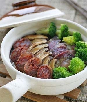 原料:西蘭花、皮蛋、咸鴨蛋、蒜、牛奶、枸杞。